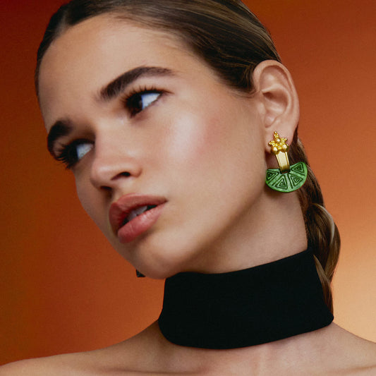 Nostra Luna Earrings in Green and Gold