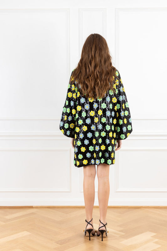 Lemon Lime Sequins Mini Caftan