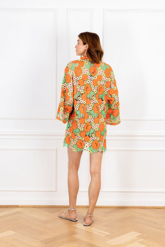 Orange Garden Lace Mini Caftan