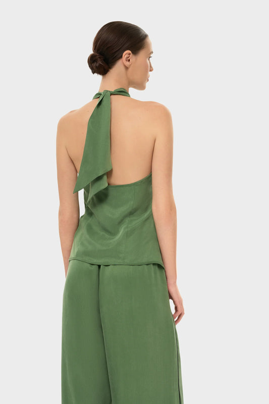 Moss Aqua Flora Cross Halter Top