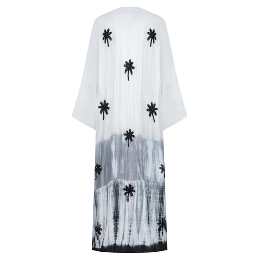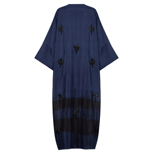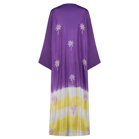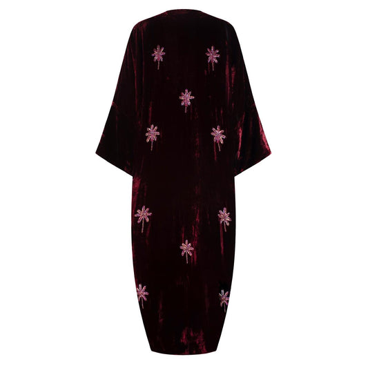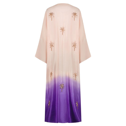 Dark Coral Ombre Kaftan with Gold Palm Trees
