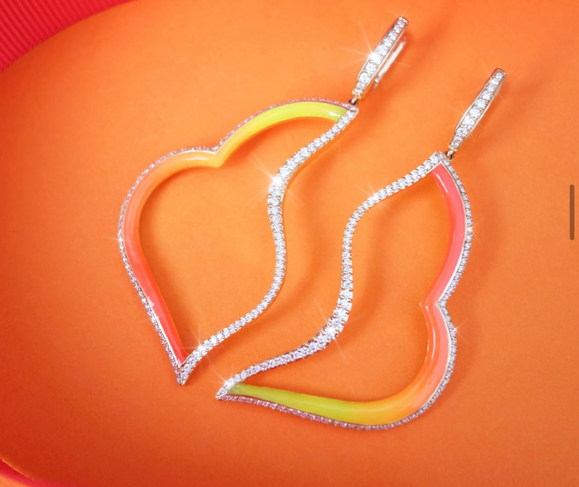 Diamonds, neon flame enamel and 18ct yellow gold | Diamonds: 1.64cts
