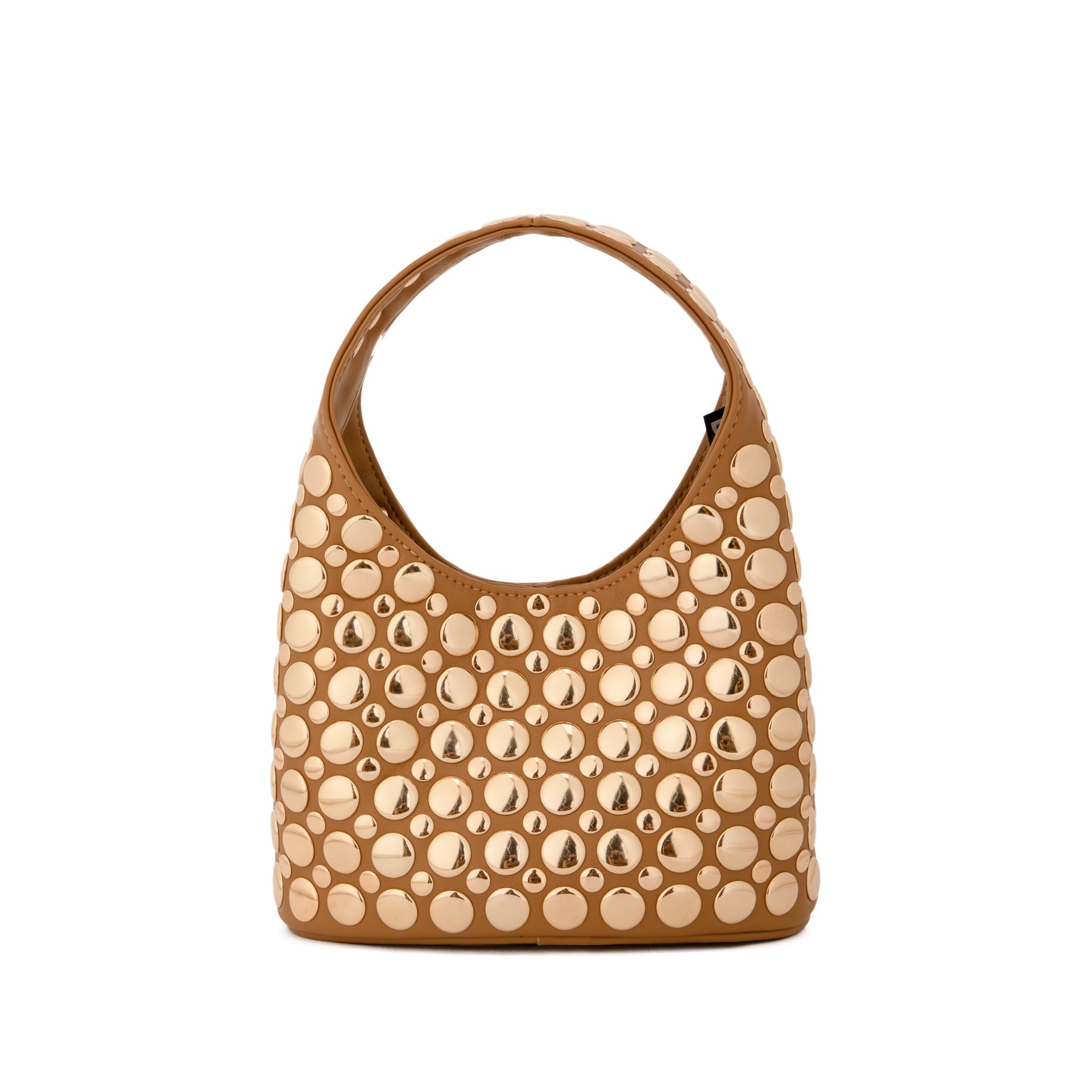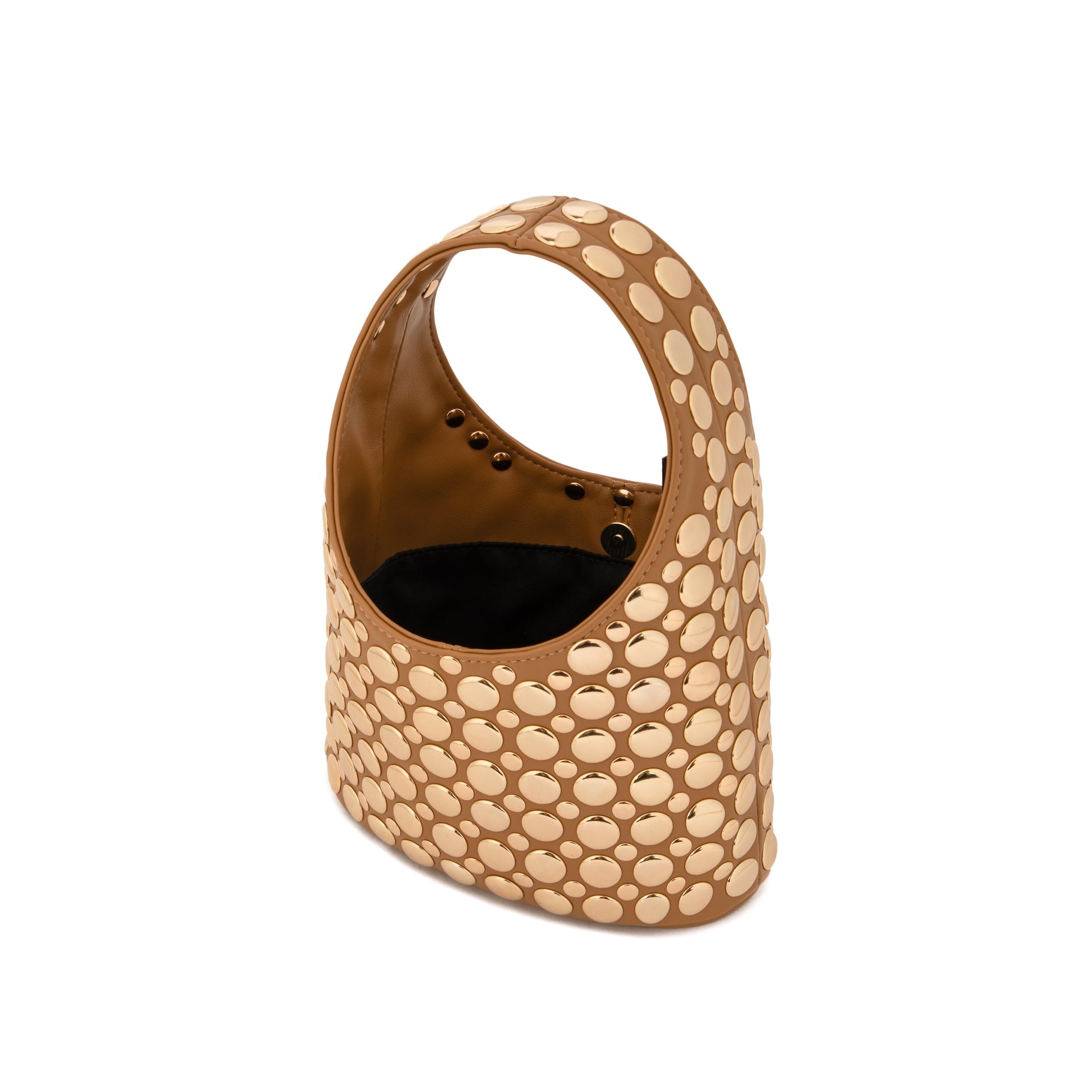 Embrace the beauty of individuality with a bag as unique as yourself, made with cruelty-free vegan leather, adorned with copper studs, and finished with a magnetic closure. Lined with recycled cotton and measuring 23 cm in height, 17 cm in length, and 8 cm in width, this bag exudes elegance, exclusivity, and timeless sophistication.