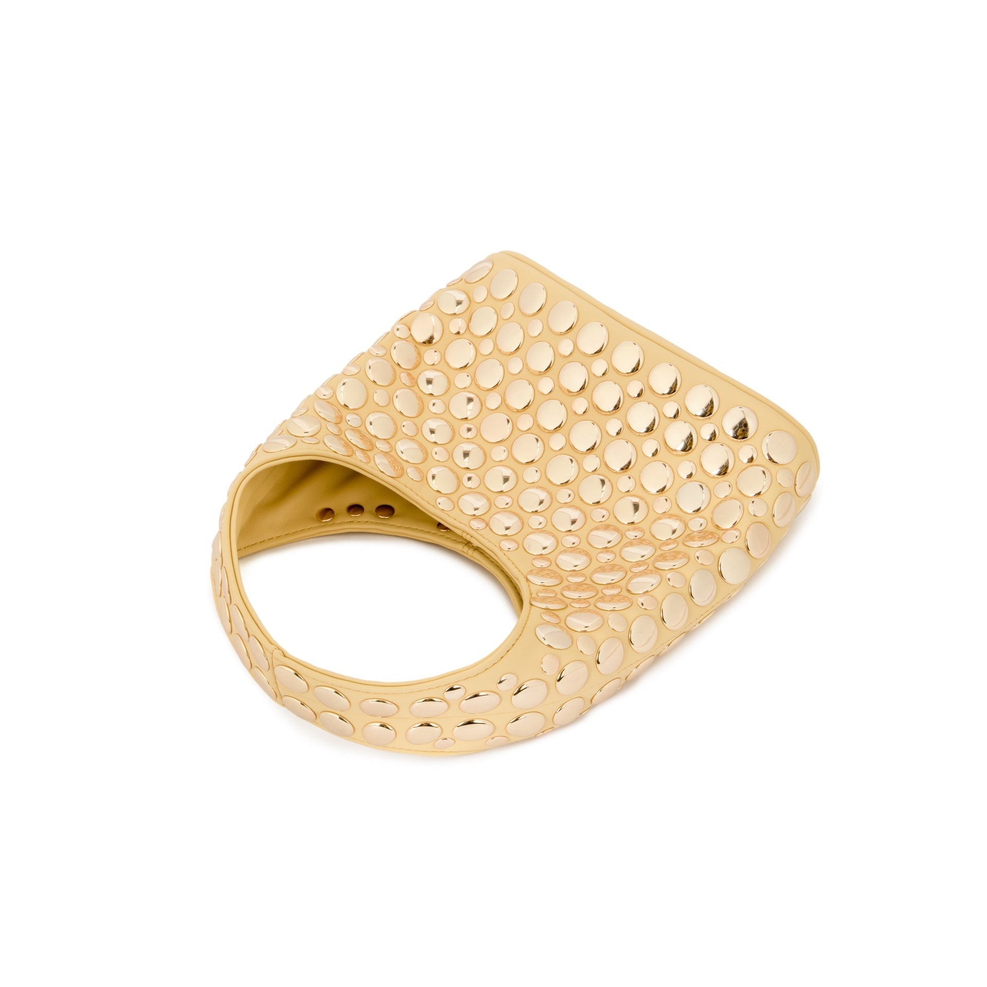 Embrace the beauty of individuality with a bag as unique as yourself, made with cruelty-free vegan leather, adorned with copper studs, and finished with a magnetic closure. Lined with recycled cotton and measuring 23 cm in height, 17 cm in length, and 8 cm in width, this bag exudes elegance, exclusivity, and timeless sophistication.