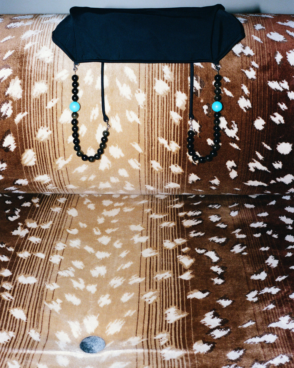 Indulge in the opulent allure of the Trinidad Strap, skillfully crafted with glossy obsidian beads. A single blue howlite bead provides a striking contrast, reminiscent of a tranquil lagoon amidst dark volcanic sands.